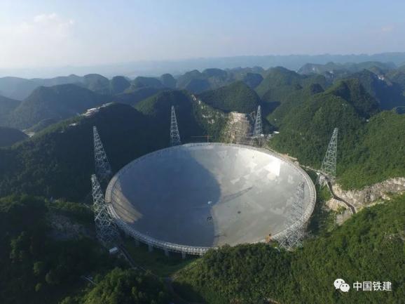 中铁十一局集团主申报、中铁十一局集团二公司参建,被誉为中国“天眼”的500米口径球面射电望远镜(FAST),总面积达25万平方米,相当于30个标准足球场大小,是我国具有自主知识产权、世界最大单口径、最灵敏的射电望远镜,能接收到137亿光年以外的电磁信号。