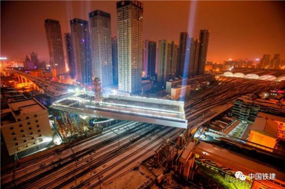 中铁十一局集团主申报并施工总承包,中铁十一局集团二公司参建的武汉市常青路改造跨铁路工程为城市道路快速化改造工程,全长3.12公里,跨汉口火车站咽喉区9条线路及道岔,桥梁上部结构采用变高度连续钢箱梁,其中第L10联转体钢箱梁采用不平衡转体法施工,转体工程具有“不平衡力矩最大”、“转体桥面最宽”、“跨越特等站铁路股道数最多”三项转体桥世界纪录,施工难度极大。