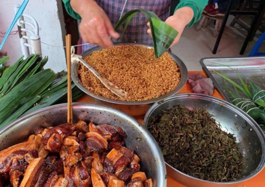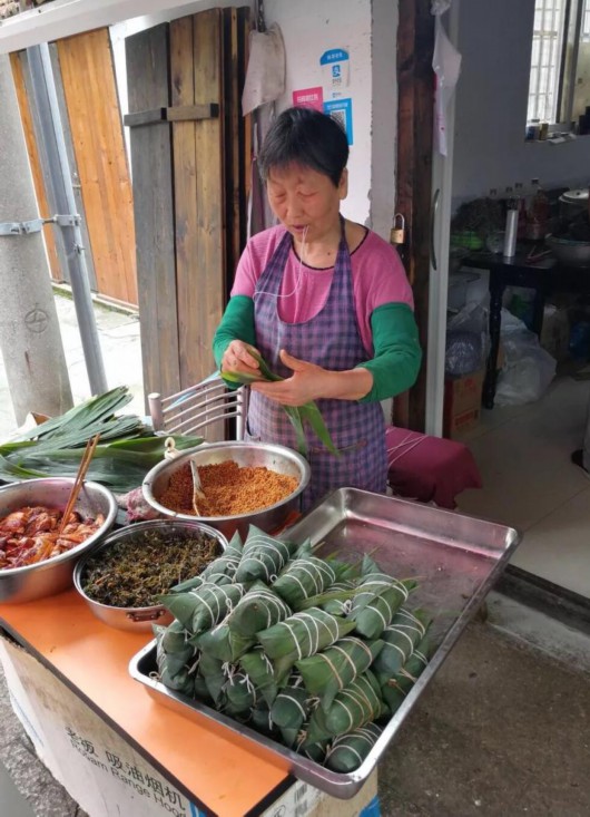 忙着包粽子的康阿姨,从早上5点做到晚上12点,人都瘦了一圈
