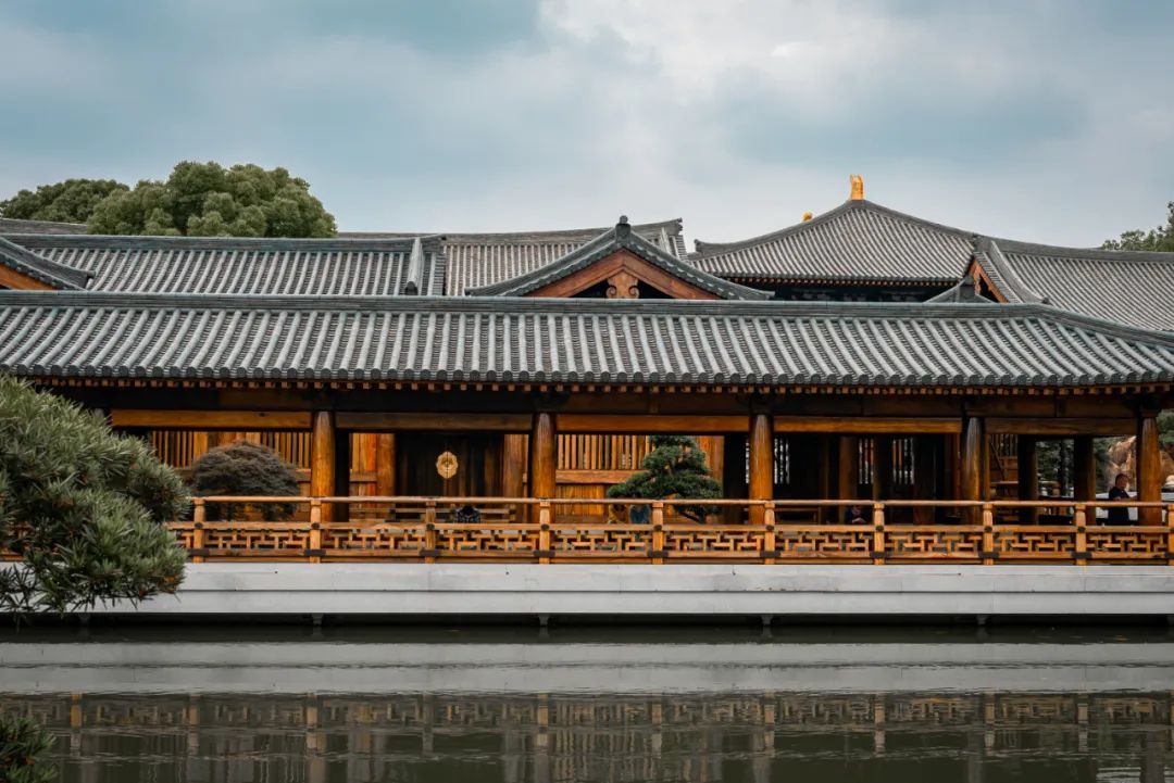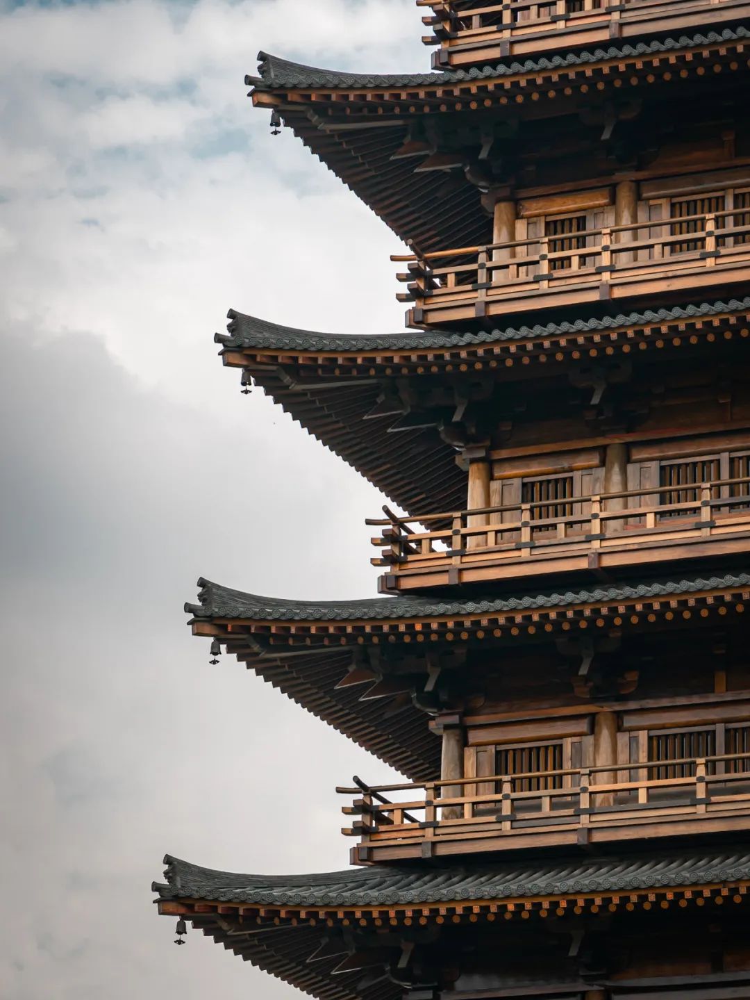 整座寺院依树傍水,寺内殿、堂、楼、阁密布,蔚为壮观,错落有致。标志性的七层浮屠塔、蜿蜒通达的连廊、小桥流水的别院、禅意十足的浮雕……分分钟穿越回唐朝!