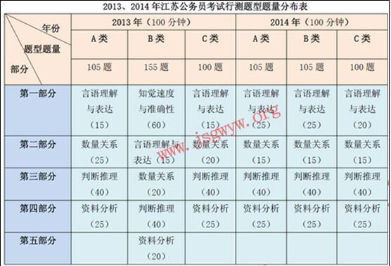 为了让考生对江苏省考行测模块有一个更形象的认识,特就近两年江苏省考行测题型题量分布进行分析,并以2015最新考试大纲为依据,对2015年相关考情进行前瞻性预测。