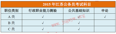 江苏省省考近年来都保持自己的风格,将公共科目笔试类别分为A、B、C三类。2015年江苏省各级机关录用公务员考试仍然采取分级考试的形式进行,试卷仍分为A、B、C三类。