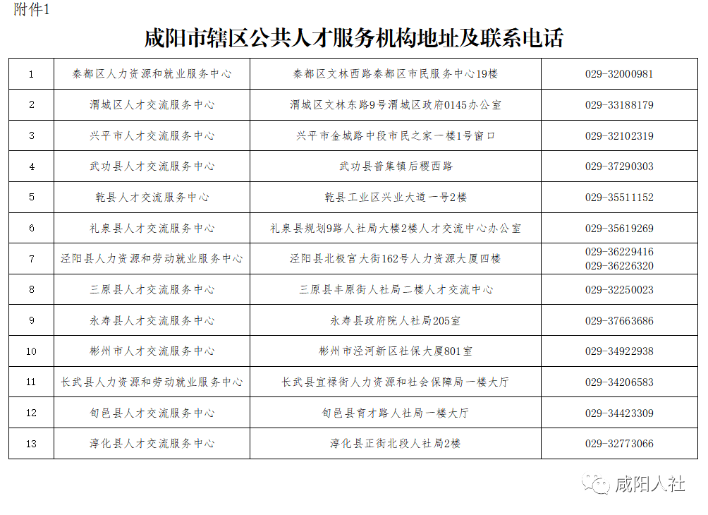 1.咸阳市辖区公共人才服务机构地址及联系电话