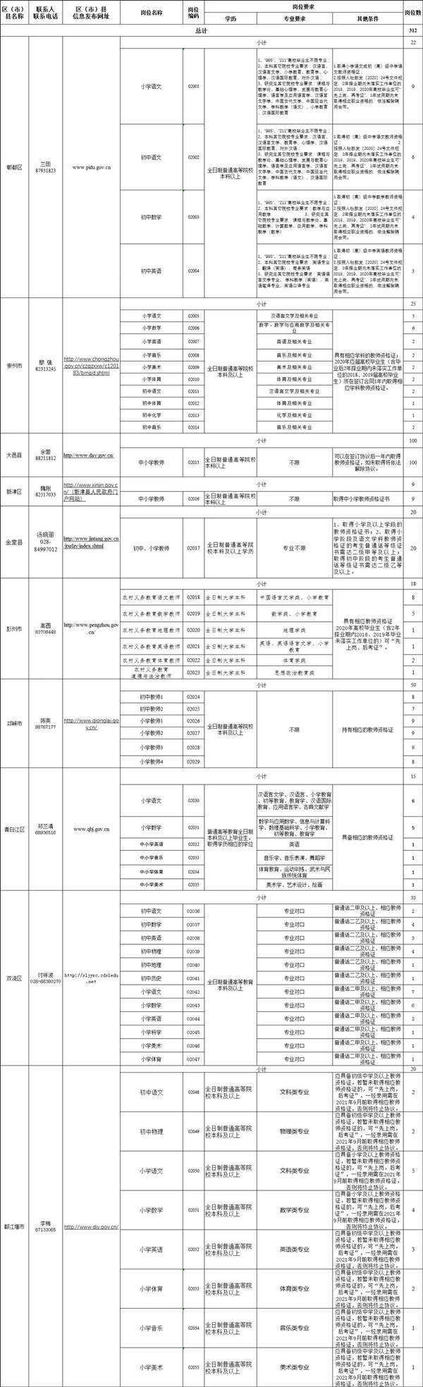 5.成绩公布。笔试成绩将于2020年8月10日前在成都人事考试网公布。进入资格复审人员名单由各区(市)县通过附件1、2、3中指定的网站发布公告。