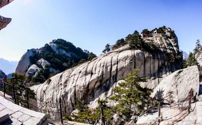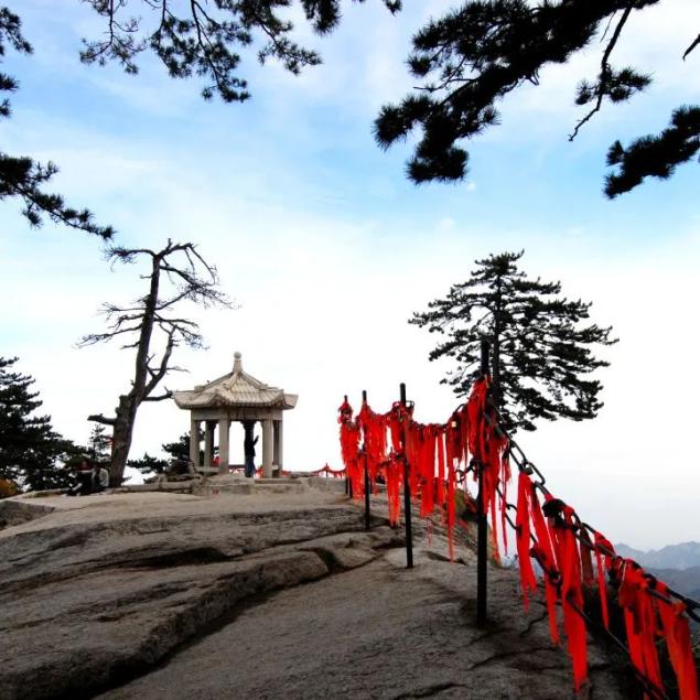 华山北峰,海拔1614米,因位置居北而名。又因其四面悬空,独秀云表,有若云台,所以又叫“云台峰”。北峰极顶是遥望“天外三峰”的最佳位置。