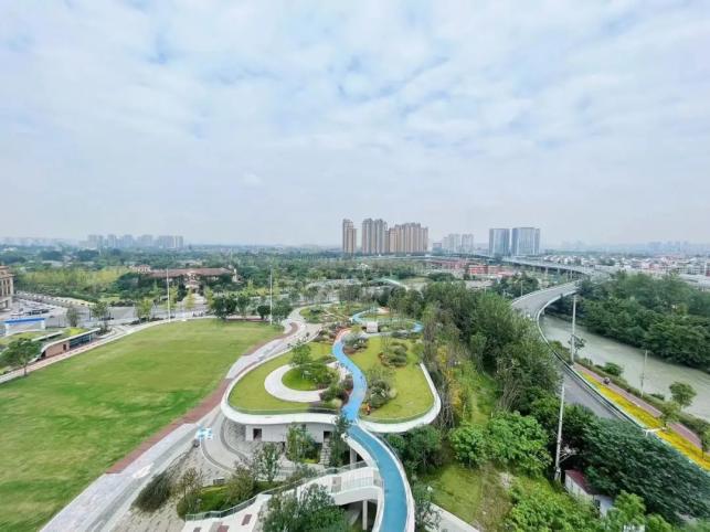 上新桥公园位于锦江公园金牛段西侧,是“锦江生态绿廊”和“沙河生态轴”的交汇点。作为金牛“九里九园”公园群的重要代表之一,这个占地76亩的城市公园设有屋顶花园乐活区、多功能文体区、景观区、儿童游乐区四个区域,能满足全年龄段市民的休闲娱乐需要。