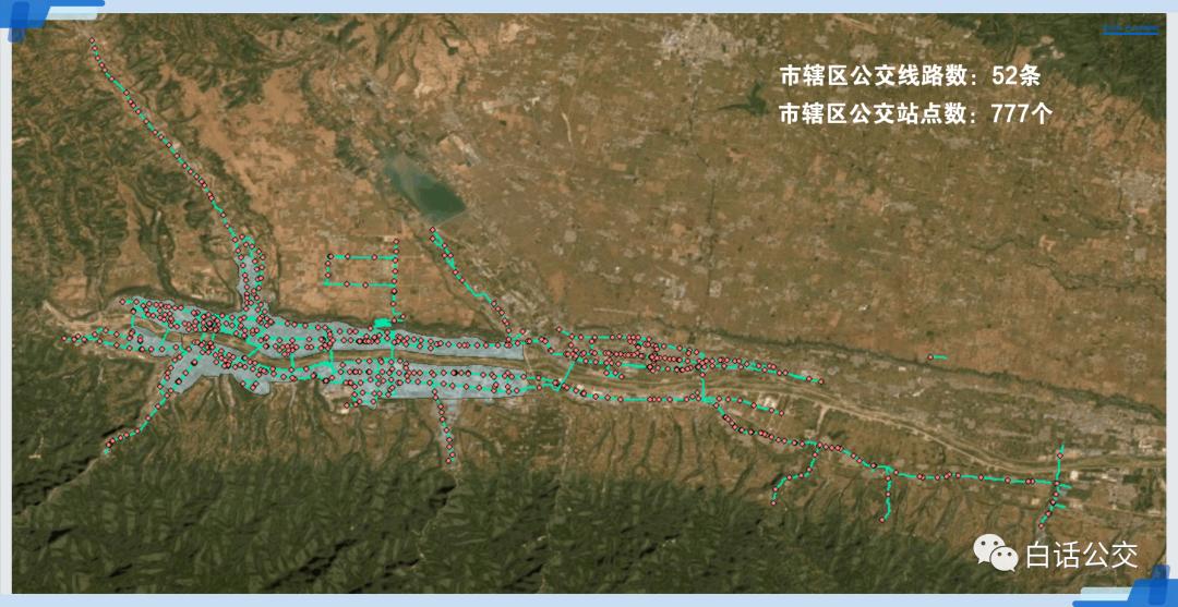 基于互联网地图平台的公交线路和站点数据,选取在市辖区内运营的城区线路、城乡线路、夜间线路、快速公交线路等公共汽电车线路。