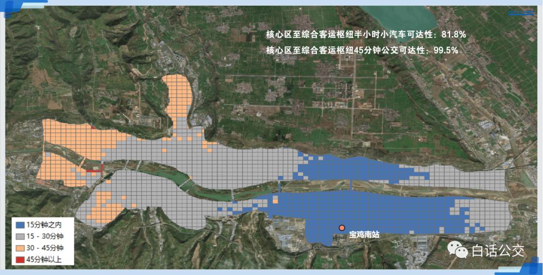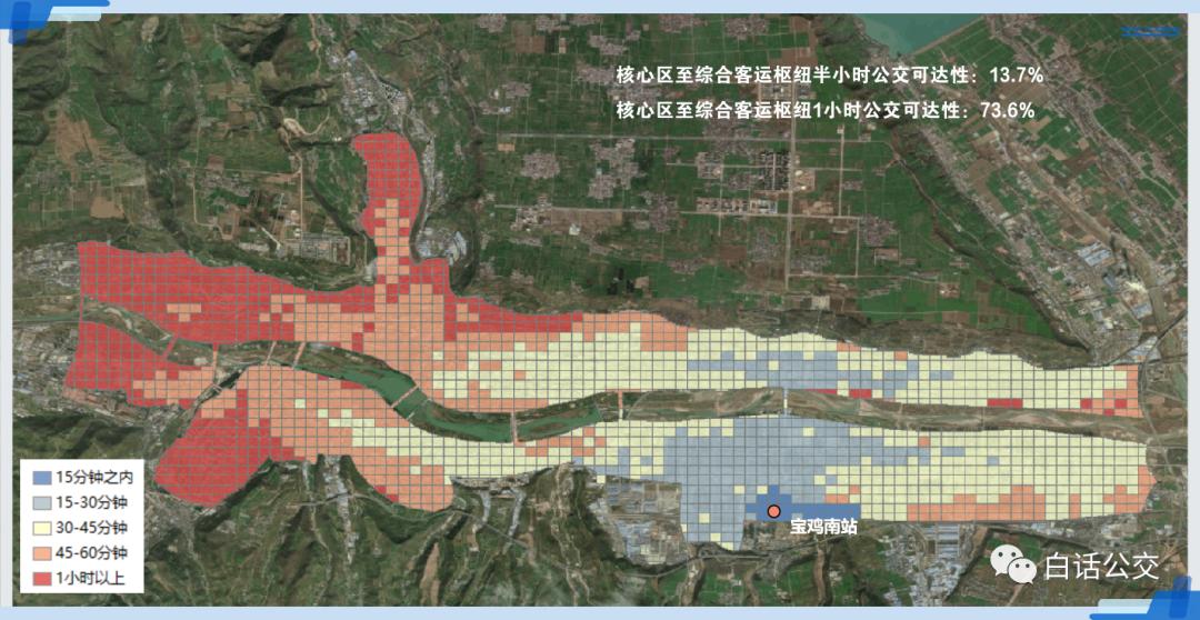 我们借鉴增加了“核心区至综合客运枢纽公交可达性”,选取城市的综合客运枢纽,分别测算公交和小汽车的可达性情况。