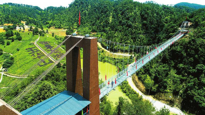 8月6日,游客在游览五华山景区玻璃吊桥。沈尔布摄