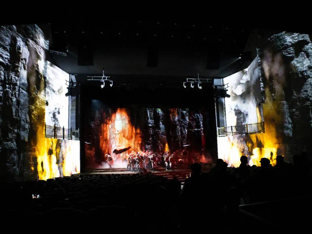 大气绚丽的舞台,声光电交织,把那战火纷飞的场景逼真的再现眼前,将你带回那段峥嵘岁月......