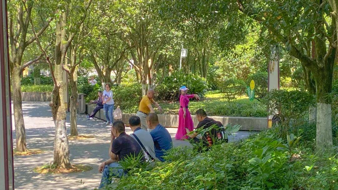 打羽毛球的、跳舞的,还有耍长枪的…好不热闹!