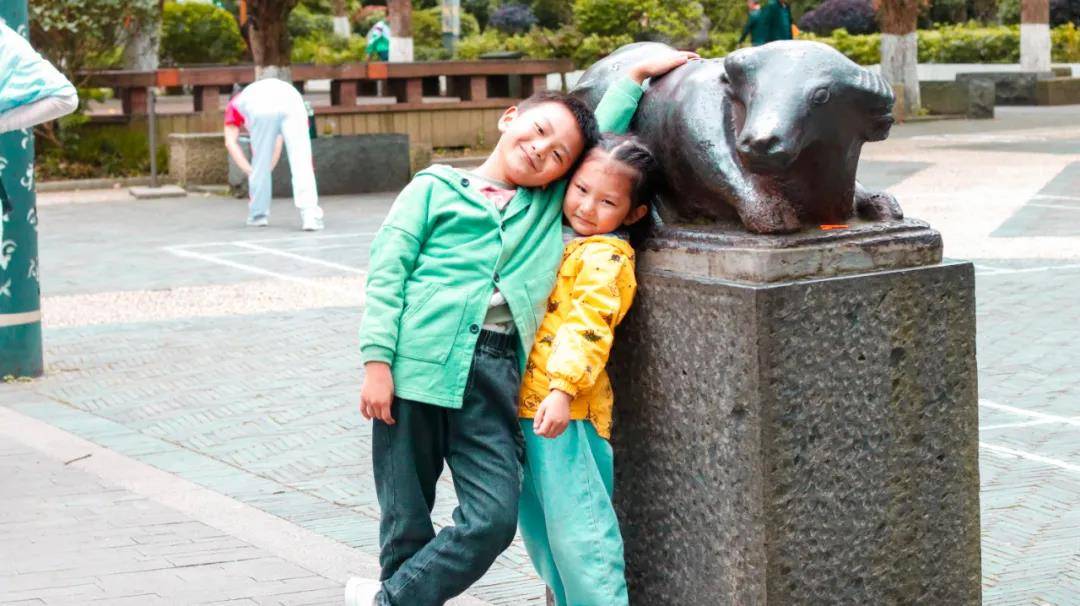 这是多少人的童年啊,每次来公园,都会骑上一骑。哪怕不骑,摸是肯定要摸的,所以石牛身上都被“摸玉了”。