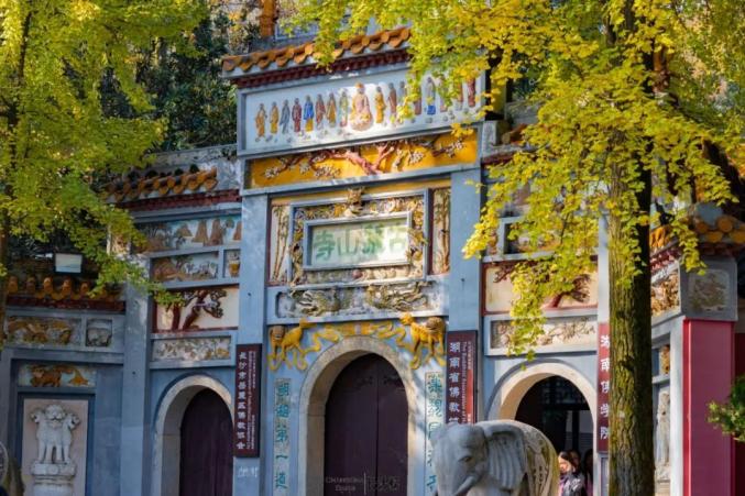 ·麓山寺:麓山寺系晋初古寺,是佛教入湘最早的一所大寺。唐代大诗人杜甫曾用“寺门高开洞庭野,殿脚插入赤沙湖”的诗句称颂殿宇宏大。门外古枫参天,浓荫覆盖,门内园圃百花争艳。