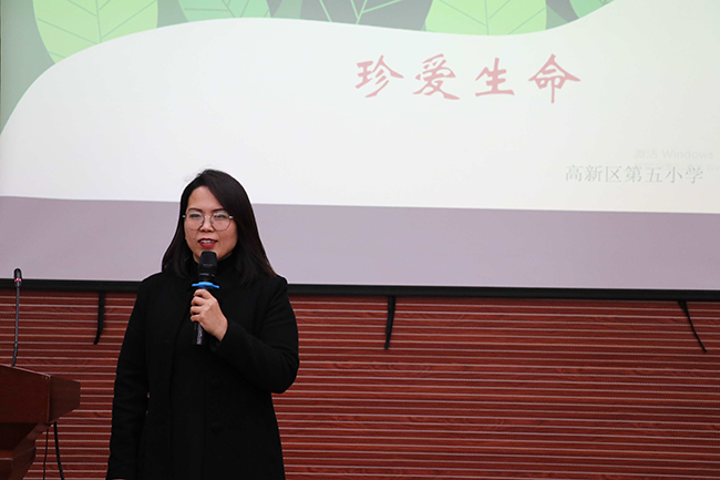 五小校区五年级三班家长在学校报告厅以《珍爱生命》为题,从“生命定义”“生命价值”“敬畏生命”“关爱生命”四个方面,教育学生要珍爱生命,懂得要通过自己的努力拓宽生命的厚度与温度,让有限的生命变得更有价值、有意义。