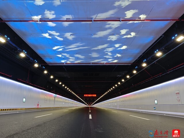 事实上,这段“海底天幕”的设计本意是为了行车安全。在隧道中段采用投光灯的形式,将一些图案投影到隧道顶部,缓解驾驶员的行车疲劳。隧道两侧还布有智能调节的全彩景观灯带,遇紧急事故时会分段显示红、黄、绿色,起到警醒的作用,引导人员有序疏散。