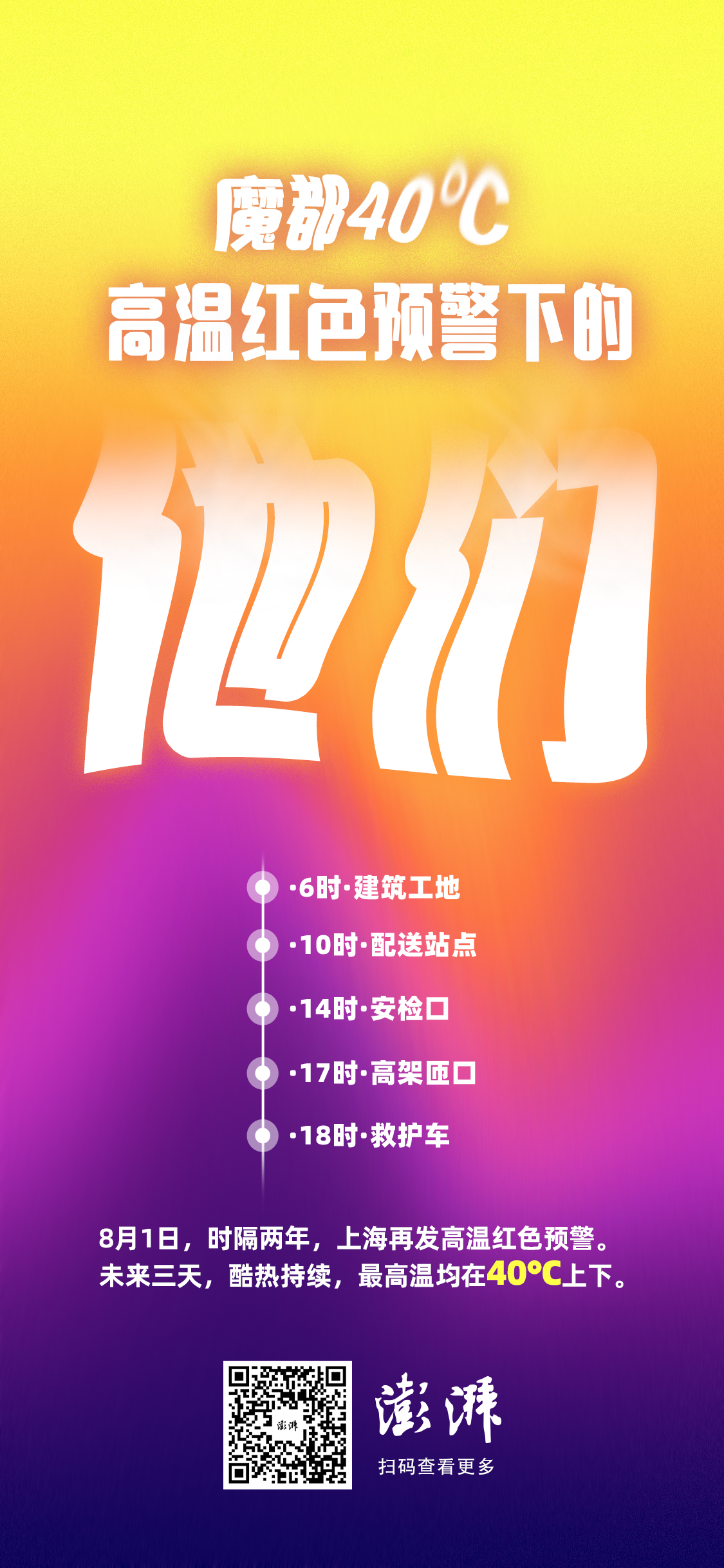 烈日“烤”向城市的每一个角落。热浪之下,时钟的指针未曾停歇,人们的行迹也依然匆匆。建筑工人弯腰“背”着骄阳,配送小哥迎着热风疾驰,交警在暴晒中疏通城市“血脉”,急救医生紧急筑起夏日的健康防线……40℃的魔都,时针每一次定格,都有平凡的人们在岗位上挥洒着汗水。