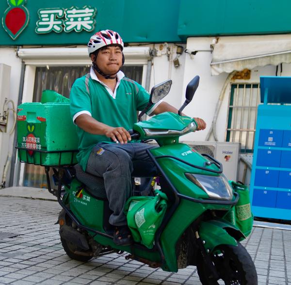 王高是江苏徐州人,老家有妻子和两个儿子,大儿子12岁了,小儿子刚刚5个月。今年是他来到上海的第6个年头,也是做配送员的第4年。“出来就是挣钱的。如果一个月赚个八九千拿回家,都不够用的。”王高直言,配送量饱和的情况下,一个月能赚到一万多。