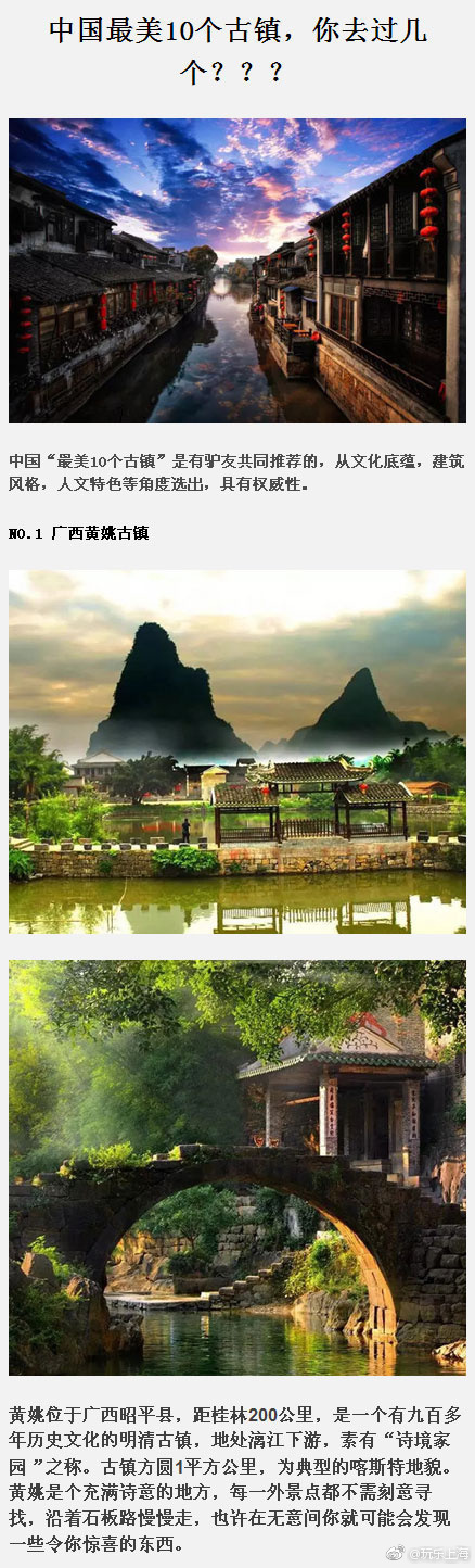 中国最美十大古镇,你去过几个?古镇,浸透了时光,也充满了缠绵往事。中国最美十大古镇,让你远离都市的喧嚣和浮躁,来一趟说走就走的静心之旅,让时光慢下来,去抚平过往,也温柔岁月。
