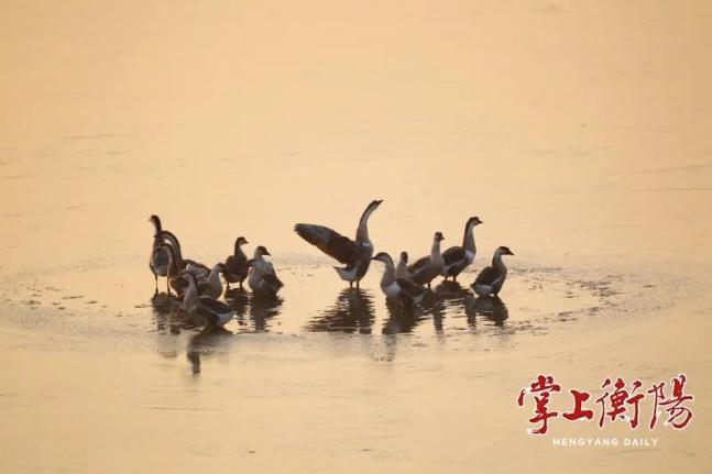 ▲大雁戏水。