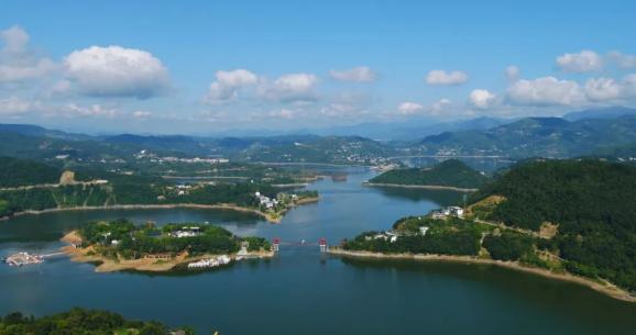 碧水蓝天,秦巴仙境,湖中波光潋滟,岛屿棋布,相映成趣,被称为“陕西千岛湖”。