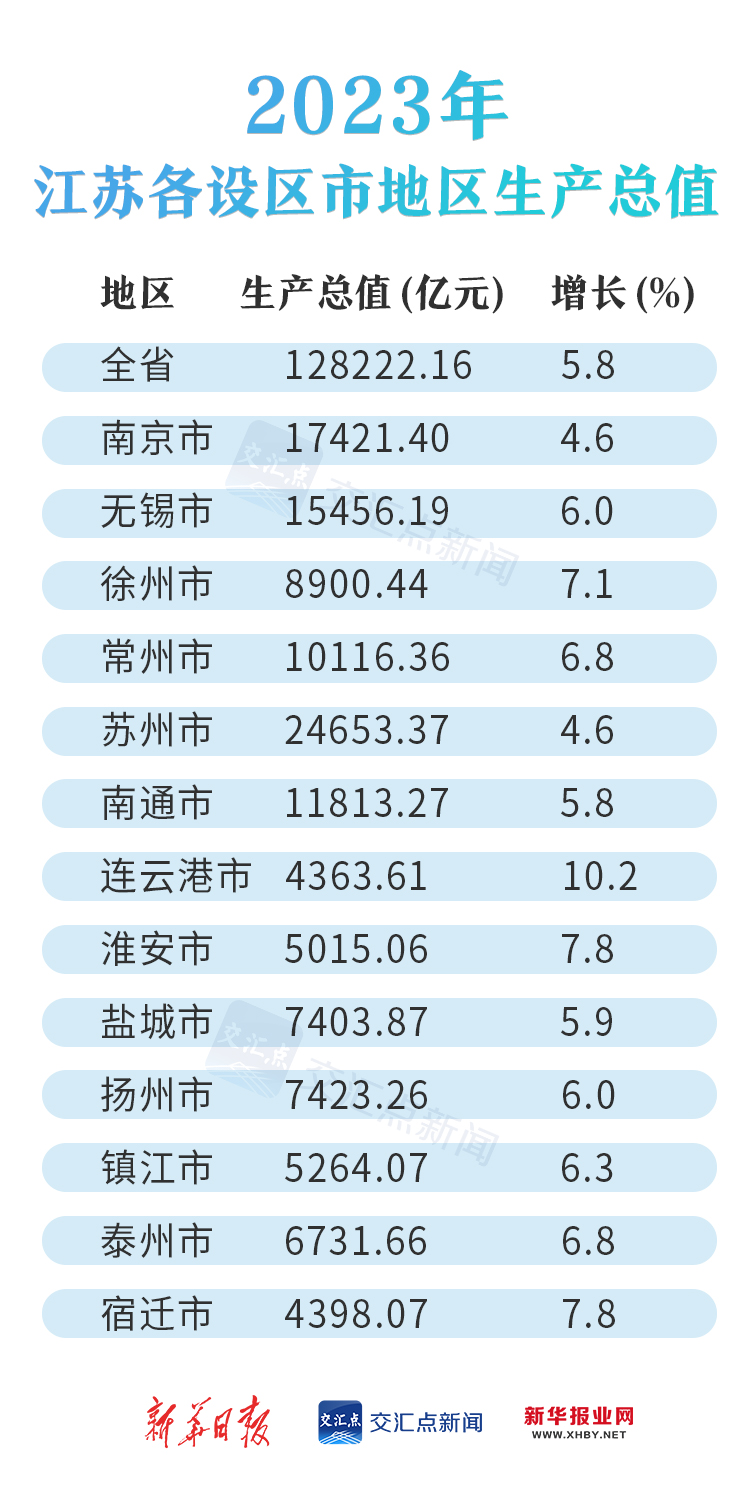 2月6日,记者从江苏省统计局获悉我省各设区市的地区生产总值情况。整体来看,根据地区生产总值统一核算结果,2023年江苏GDP实现128222.16亿,同比增长5.8%。江苏13个设区市中有5个市GDP总量超万亿元,江苏也成为首个拥有5座万亿城市的省份。