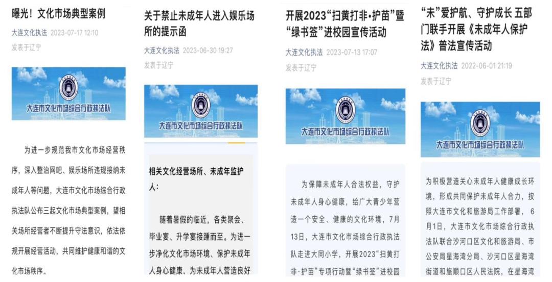 原标题:《大连市文化市场综合行政执法队:加强青少年教育保护 优化青少年成长环境 | 权益岗巡礼》