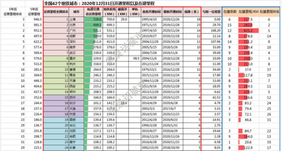 事实上,2020年西安地铁客运总量全国第8,明显高于其地铁运营里程排名。而从截至到2020年底的地铁运营里程来看,西安的排名也要低于其人口排名。
