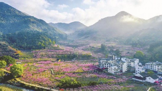 桃花盛开时的福安市穆云畲族乡虎头村