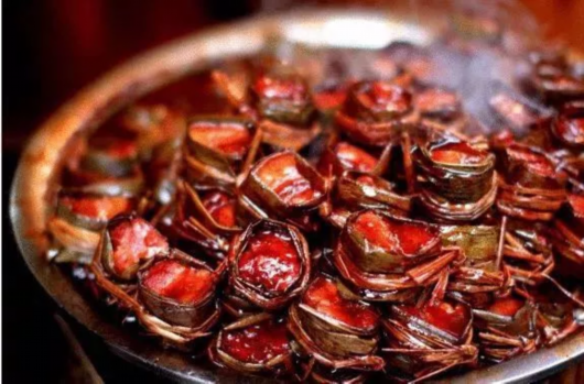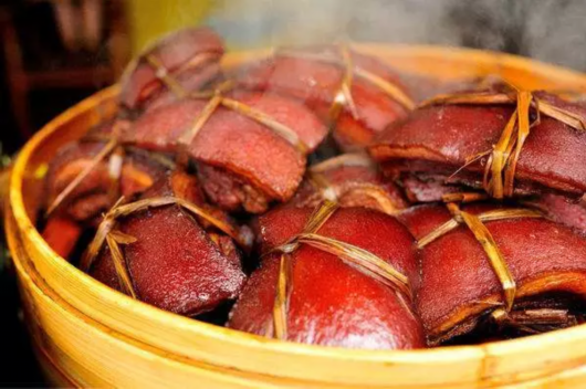 扎肉也是朱家角有名的小吃,带皮的肉,用箬叶和草绳捆扎好,放在卤水中细火慢熬。煨的时间久了,箬叶的清香和卤水的鲜美慢慢渗透到肉里,即使吃的满嘴流油也不会觉得腻。