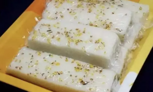 吃完茭白和烧麦,肚子还没饱的话,不如再来一份练塘白芙糕当点心。透白细腻,咬上一口,甜糯可口。