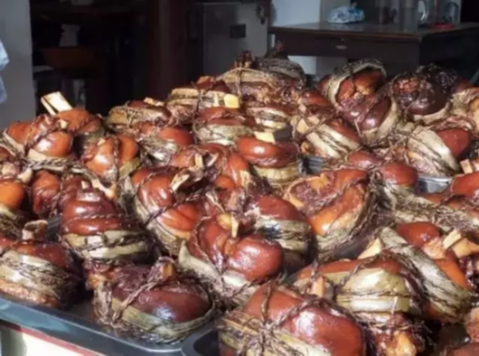 许多粽子店里会搭配着自家秘制汤汁煨出来的肘子、蹄?来卖,这红烧蹄?也是令人垂涎,看了真是走不动道~