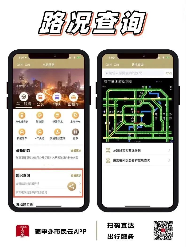 “随申办市民云”APP提供【车主服务】,包括上海停车、路况查询等多项功能