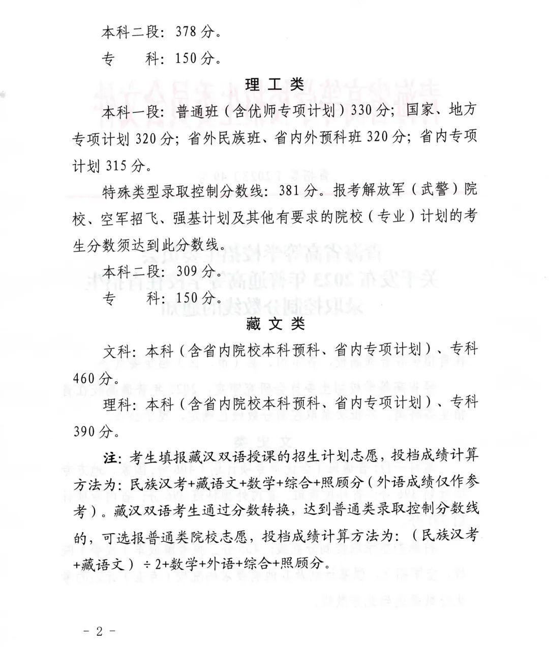2.普通本科二批录取控制分数线:文史 341 分,理工 287 分。