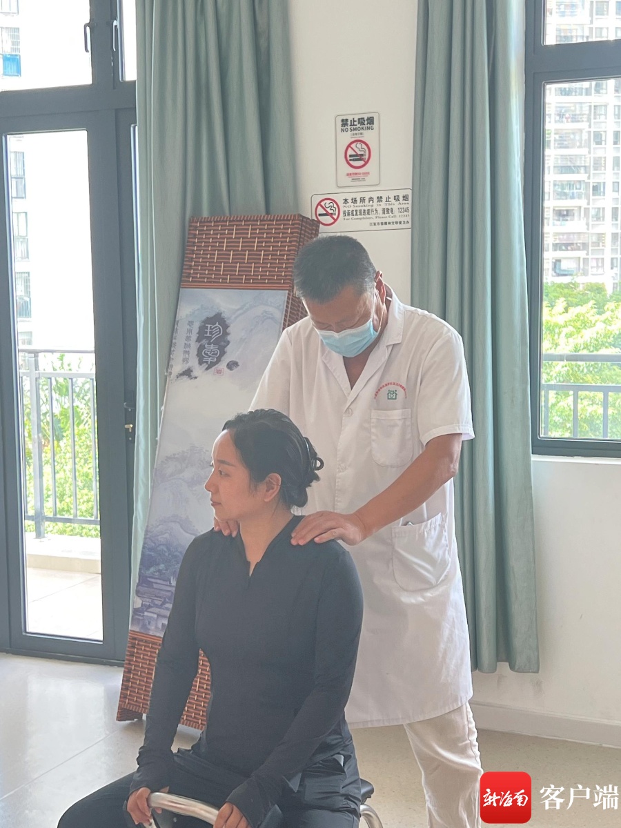 三亚市吉阳区海罗社区卫生健康服务中心医生为居民进行中医按摩推拿。记者 张宏波 摄