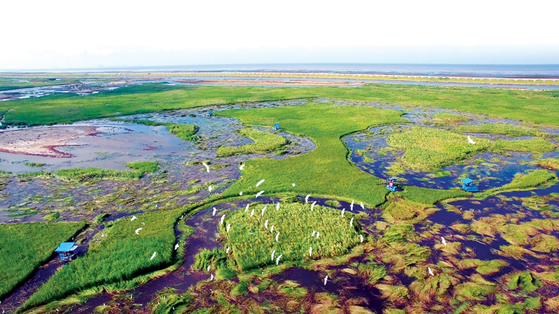 上海崇明东滩湿地生态修复。