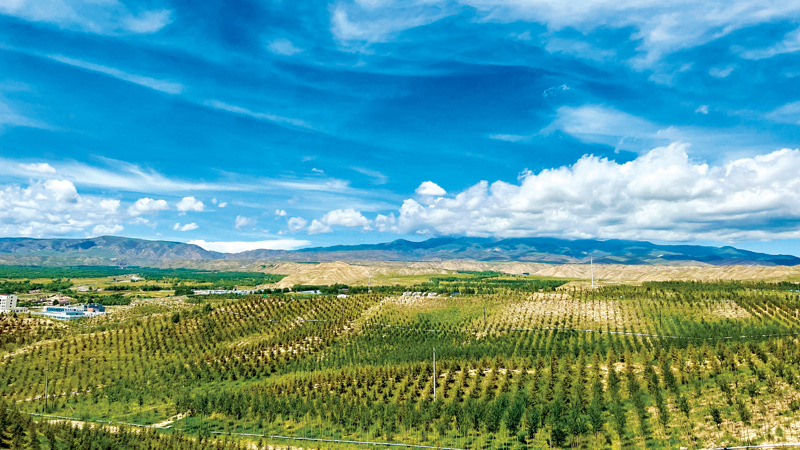 第三个是青海的三江源生态公益林建设。青海省海南藏族自治州共和县恰卜恰镇,平均海拔3200米,过去由于临近“大荒滩”德吉滩,常年饱受风沙侵袭。通过我们集团助力中国太保集团开展三江源生态公益林前后三期的建设,现在的德吉滩满眼绿意,成了恰卜恰镇最美的生态景区。
