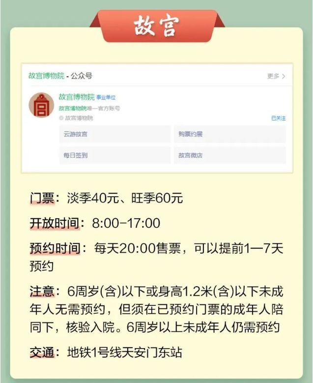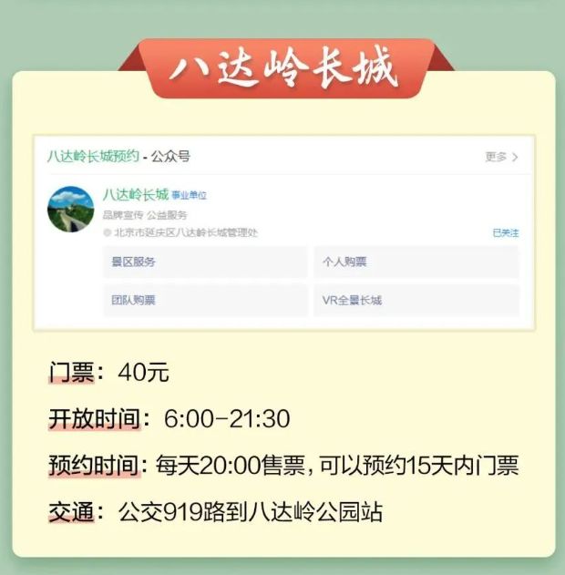 温馨提示:微信搜索公众号【北京本地宝】,关注后在对话框回复【景区预约】可获北京各大景区/博物馆预约购票入口、景区开放时间及退票相关指引。