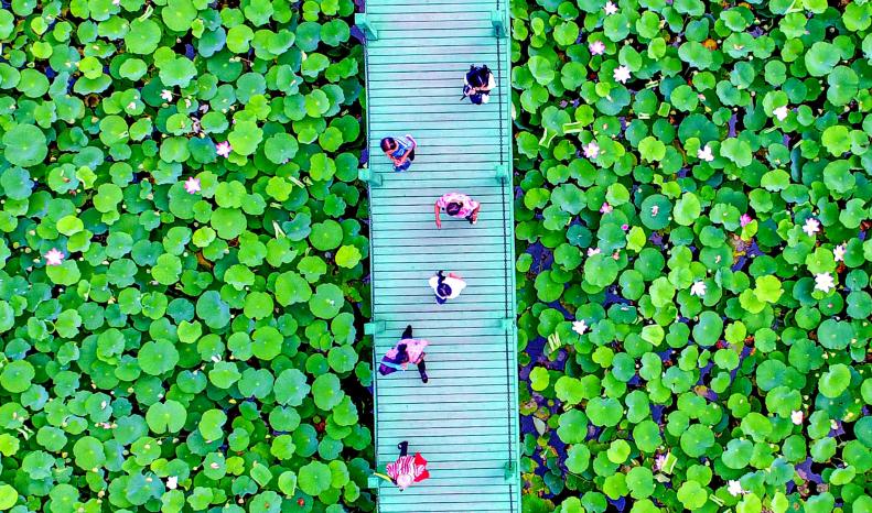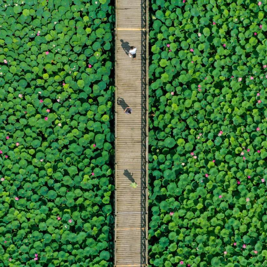 这里有3000多亩荷花,走在600米长的木栈道上,可远观荷花之美;在芙蓉码头乘竹筏,穿行于荷花丛中,可近嗅其香。