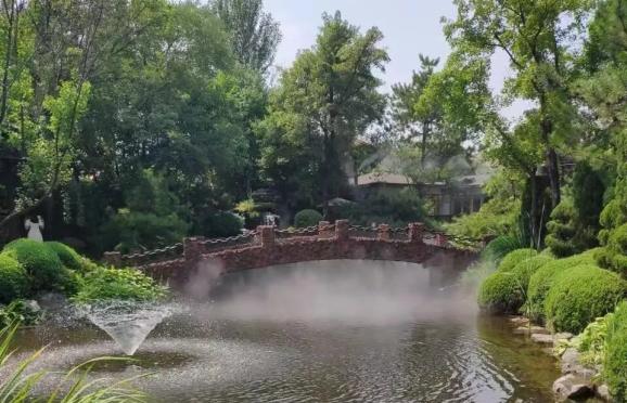 园区南北长500多米,处处是精致的美景。轻烟缭绕、小桥流水、郁郁葱葱……这是在假山、小桥、流水之间休闲、喝茶、聊天的好去处。