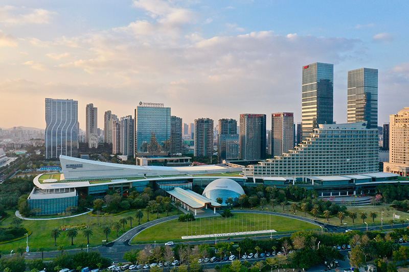 厦门国际会议中心及周边建筑(12月9日摄,无人机照片)。