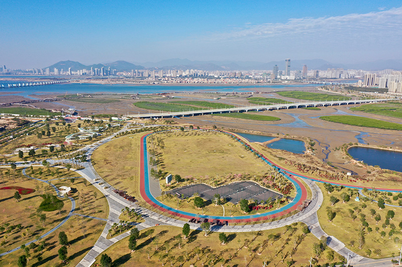 厦门市翔安区休闲健身公园与湿地景观(12月8日摄,无人机照片)。