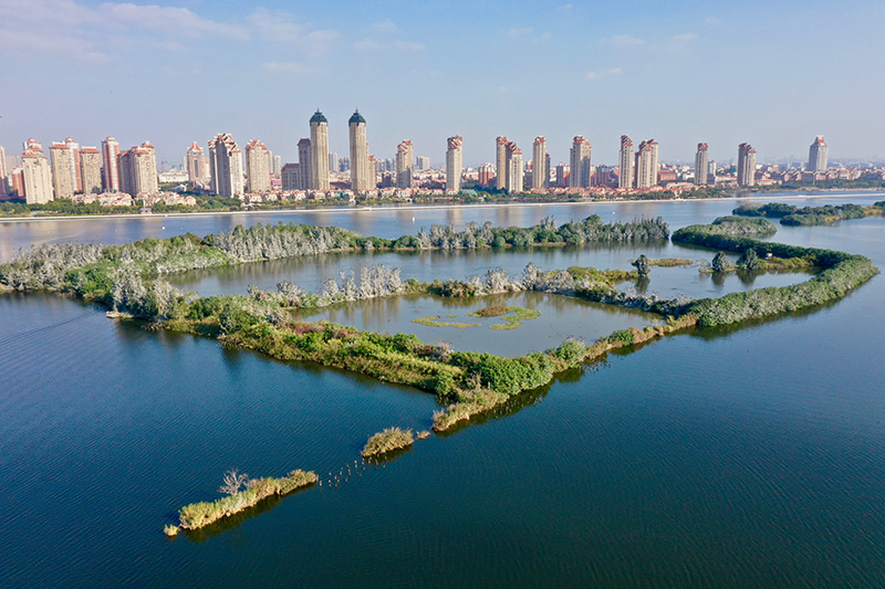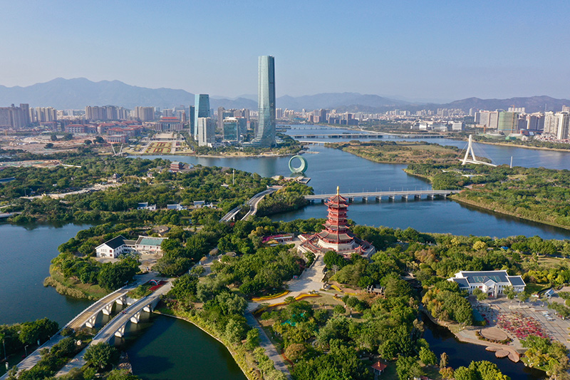 厦门市集美区城市湿地景观(12月8日摄,无人机照片)。
