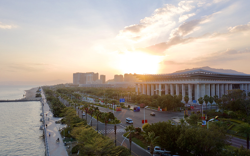 位于厦门环岛路一侧的厦门国际会议展览中心(12月9日摄,无人机照片)。