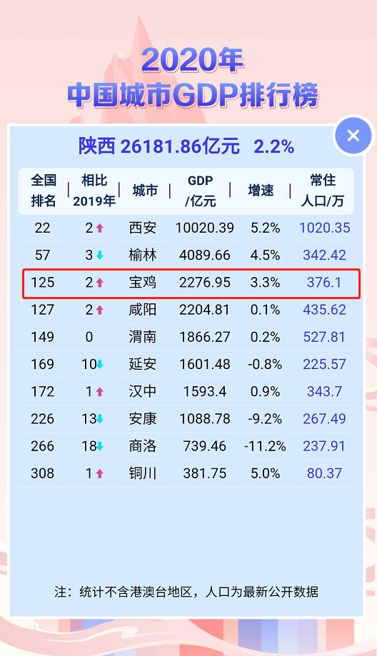 原标题:《全国城市GDP排行榜发布!宝鸡再进两位,位列……》