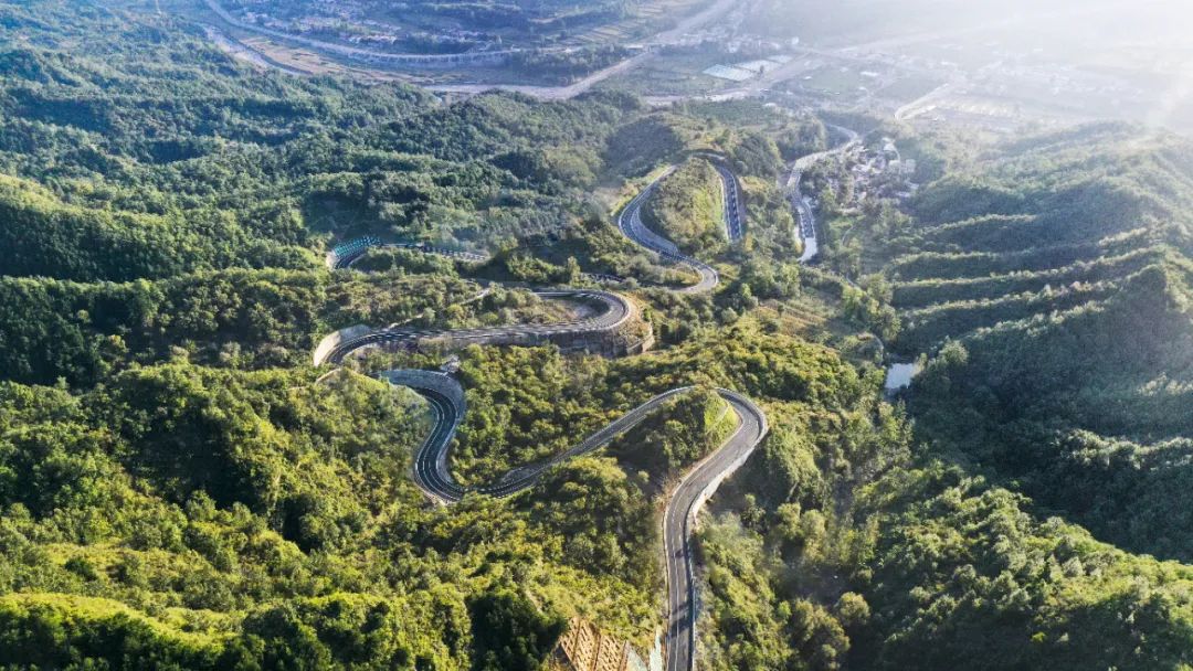 武当大道在建设过程中充分融合了农村公路“+产业”“+旅游”“+物流”等元素,利用已有资源,尽量避免占用良田好地,实现土地资源集约高效利用。同时,尊重沿线自然生态和人文风貌,随形而弯、依山就势进行建设,并配套观景台、绿道等设施便于游客出行。该路独特的地理位置将沿途山的秀美、水的灵动、村的精致有机串联起来,营造出“人在风景中,举目皆风景”的大美景观,实现了水清、路美、岸绿的生态格局。
