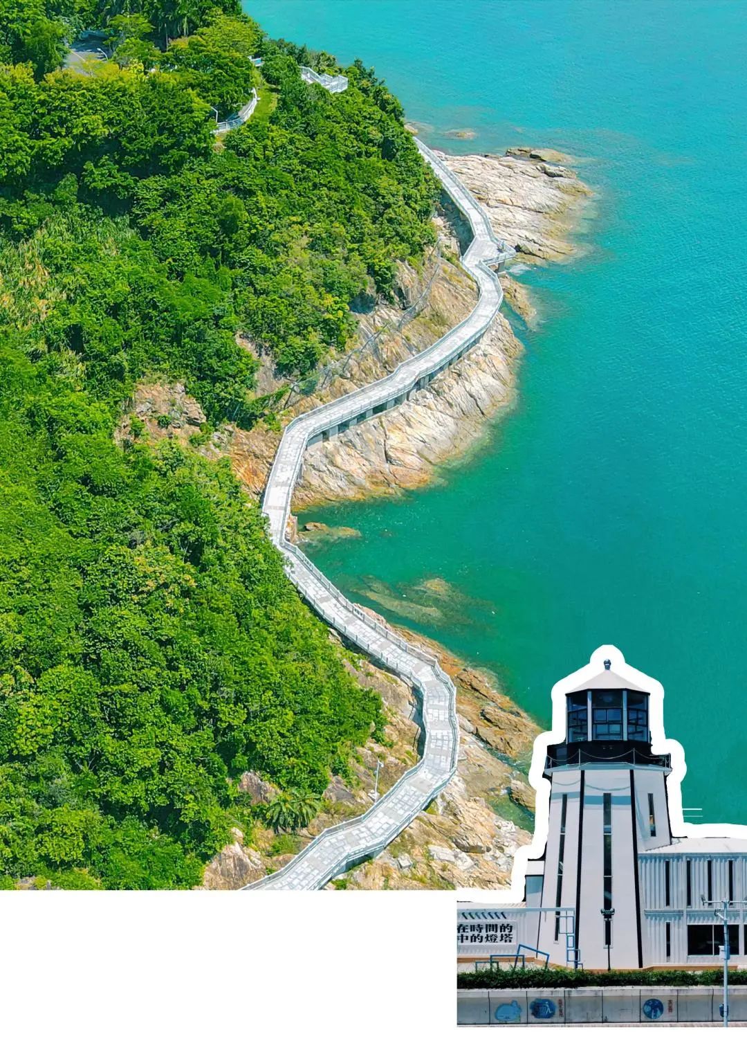 栈道依山傍海,串连沙头角、盐田港、大小梅沙,观景听风,极为舒畅,是沿海岸线观光骑行的首选。随栈道漫步,看到一个融合了集装箱轮船造型的建筑,那就走到灯塔图书馆了。以天文为特色主题,四楼配有天文望远镜,可供读者白天看海,夜晚探星。
