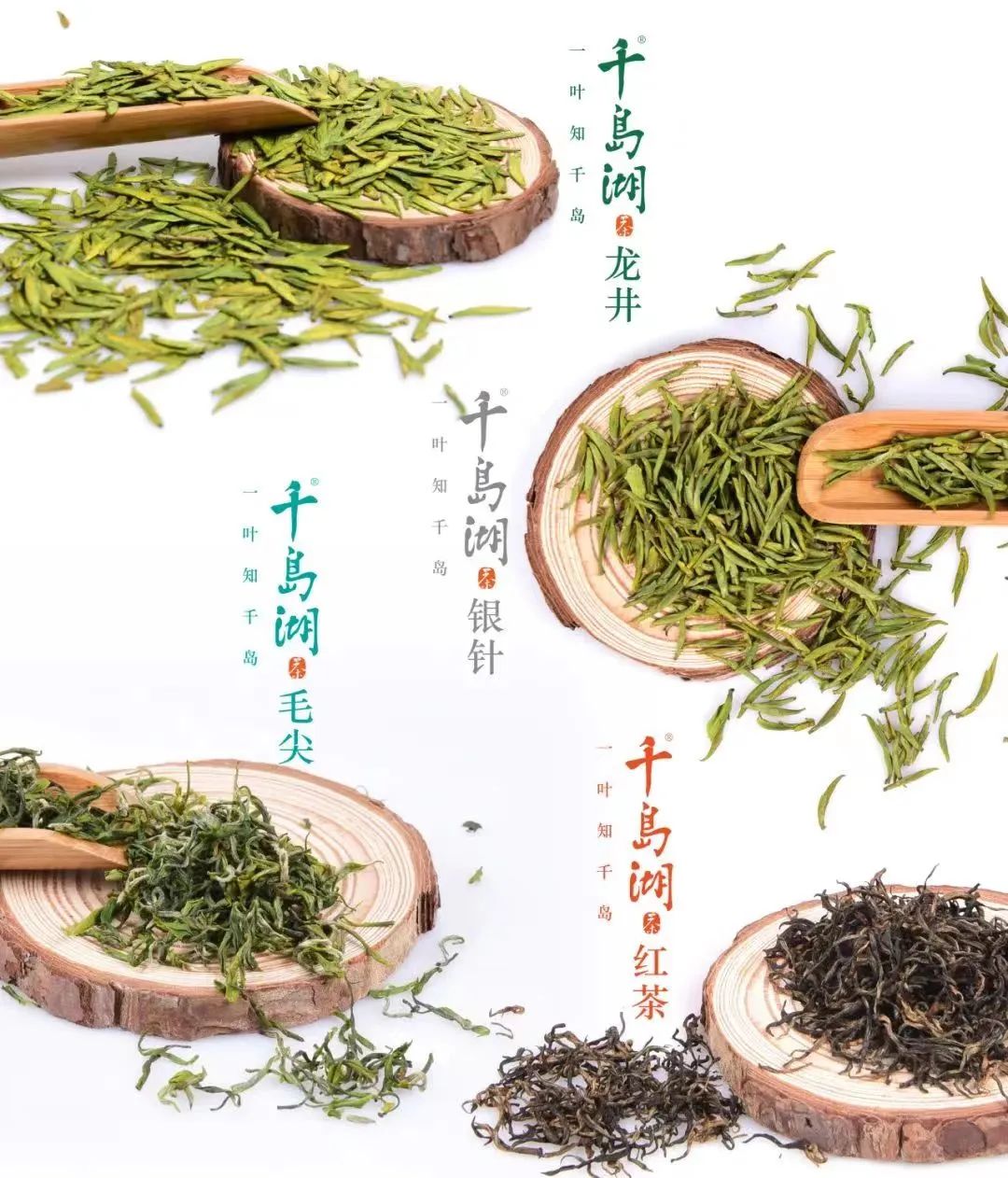 千岛湖茶,产自淳安,亦是淳安茶叶区域公用品牌名,产品包括龙井、毛尖、银针、红茶四个系列。千岛湖龙井茶外形扁平光滑,绿中带黄,栗香馥郁持久,滋味香甜柔和,回味厚甘,经久耐泡;千岛湖毛尖茶外形细嫩紧结,色泽翠绿显毫,香气浓郁持久,滋味浓厚甘爽;千岛湖银针茶外形重实、挺直似针,色泽嫩绿鲜活,香气清香持久,滋味鲜爽甘醇;千岛湖红茶外形肥硕紧结,色泽乌润,滋味鲜活甘爽、喉韵悠长,浴汤数遍口感依然饱满甘甜。