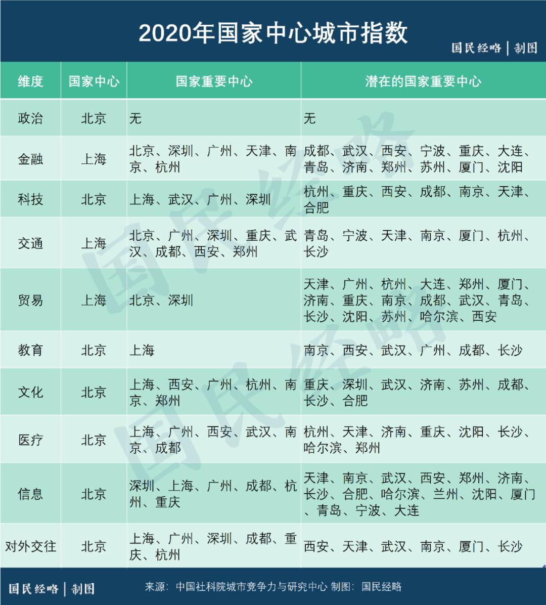 在社科院发布的国家中心城市指数中,北京夺下7项第一、3项第二。位居首位的分别是国家政治中心、科技中心、教育中心、文化中心、医疗中心、信息中心对外交往中心,堪称综合实力最强。