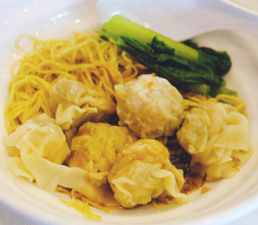 建议单点净云吞配捞面,应记用的是鸡蛋竹升面,以竹杠不停敲打制成,几乎没有碱水味,因此面条会偏软一些,如果是汤面会容易坨,飞汤的捞面更Q弹爽滑,配上牛腩汁和浙红醋,清爽得来又十分香弹,一碗云吞面下肚,读书、工作都更有气力了。