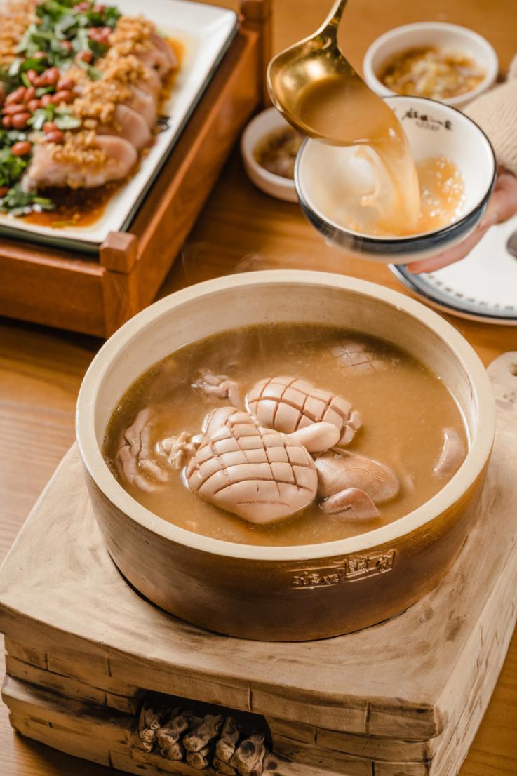 猪腰首先得够肥厚,个头大且饱满。秘诀在汤头,汤底会用老母鸡、猪骨外加多种药材和香料熬制,本身就够鲜甜,点睛之笔是温润的黄酒与辛辣的黄姜汁,酒香姜香浸出爽口厚实的猪腰,喜欢更辛辣口感的还可以另外加胡椒。汤中还可以浸入鸡子和猪脑,爆浆的鸡子与绵软的猪脑口感十分独特,但不会觉得有腥气,不喜内脏的也可以放心接受。